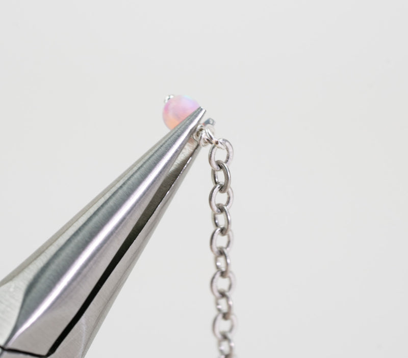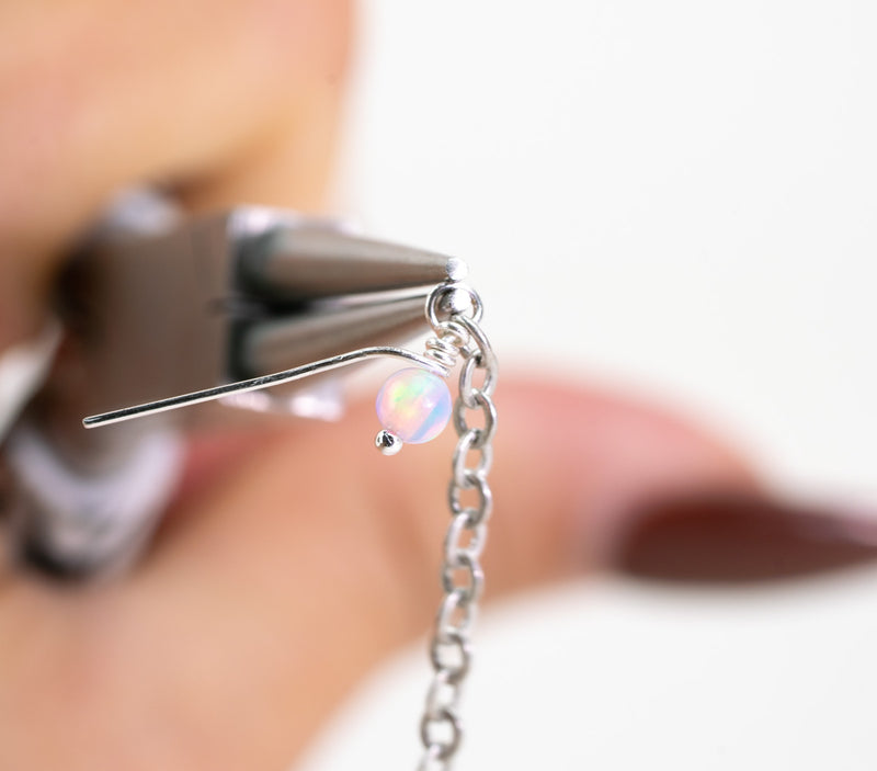 Turn your round-nose pliers so they are horizontal, with one jaw inside the loop and the other outside.